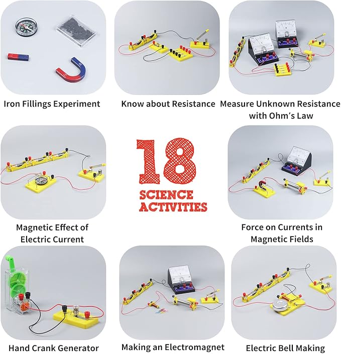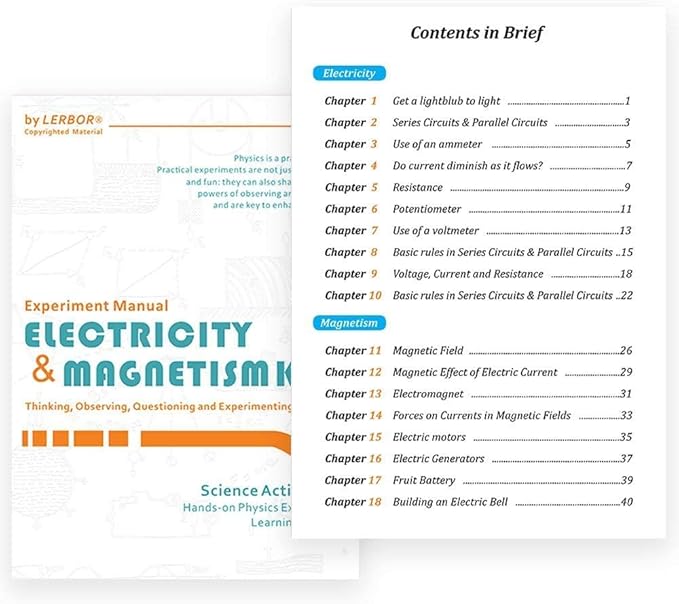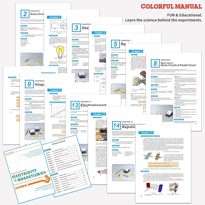 - A Great GIFT FOR BOYS And GIRLS: A science kit to learn the basic circuit principles and investigate electricity and magnetism by doing experiments with 50 Items including a 40-pages full-color manual. Gift ideas for birthdays, children's day and Christmas