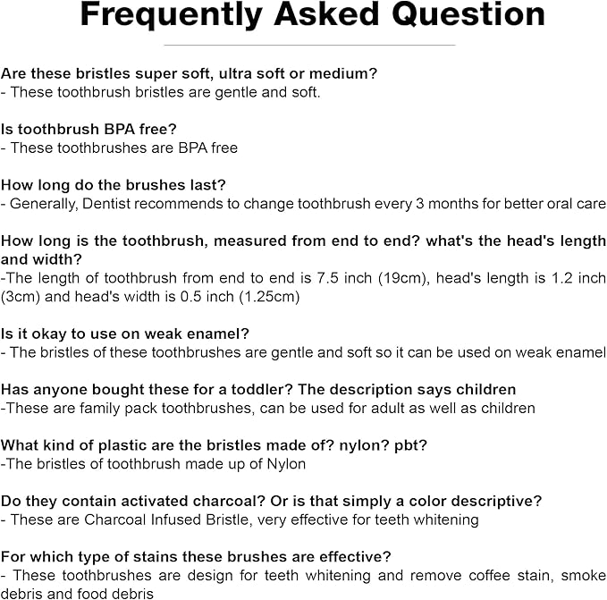 - Money-Back Guarantee: Don’t forget to add these ultra-soft charcoal toothbrushes to your cart for your whole family. If for any reason you’re not happy with our product, we will make it right and process a refund for you. Get your pack risk-free today with our premium money-back guarantee.