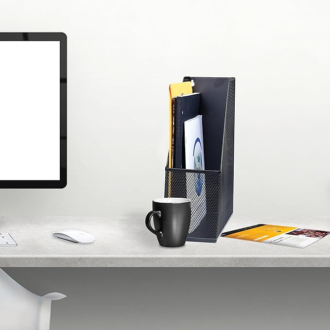 YBM HOME Steel Mesh Wall Magazine File Holder for Home & Office Organization, Serves as a Magazine Rack, Desk Organizer, Letter and Mail Bin, Holds Up to 20 Magazines - 4-Pack Black, 1101-4