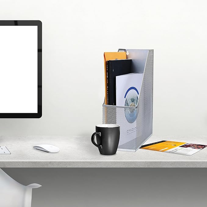 YBM HOME Steel Mesh Wall Magazine File Holder for Home & Office Organization, Serves as a Magazine Rack, Desk Organizer, Letter and Mail Bin, Holds Up to 20 Magazines - 6-Pack Silver, 1111