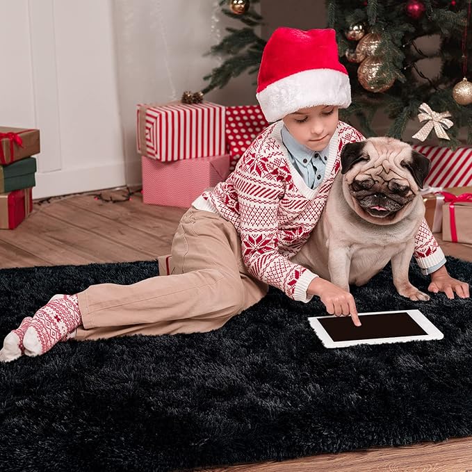 Noahas Ultra Soft Fluffy Bedroom Rugs Kids Room Carpet Modern Shaggy Area Rugs Home Decor 2.6' X 5.3', Black