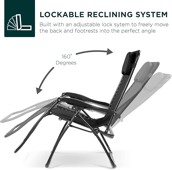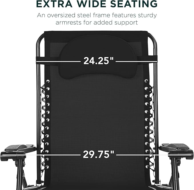 Best Choice Products Oversized Zero Gravity Chair, Folding Outdoor Patio Lounge Recliner w/Cup Holder Accessory Tray, Pillow - Black