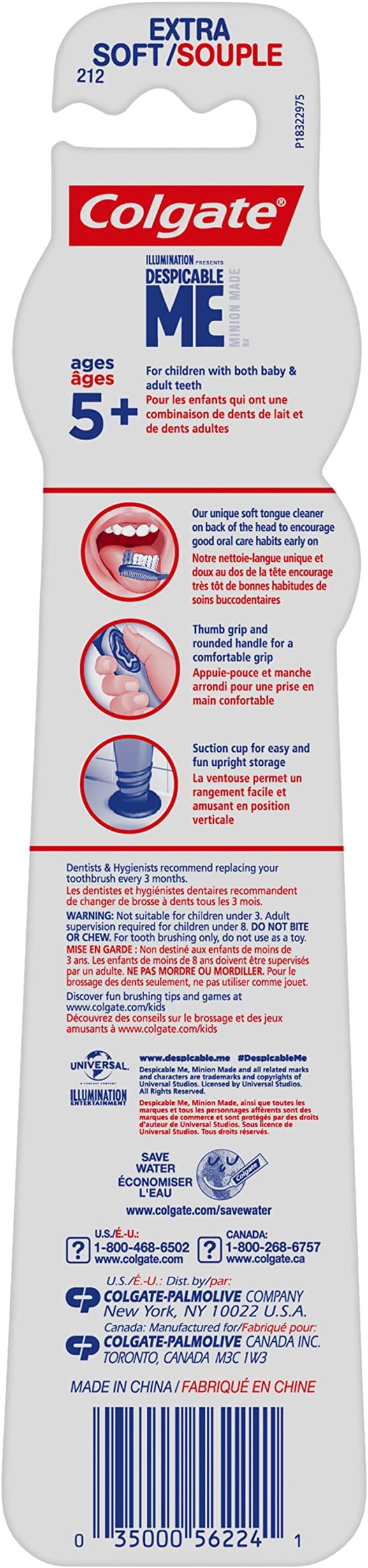 Colgate Kids Toothbrush, Minions, With Extra Soft Bristles and Built In Suction Cup Holder, 4 Pack