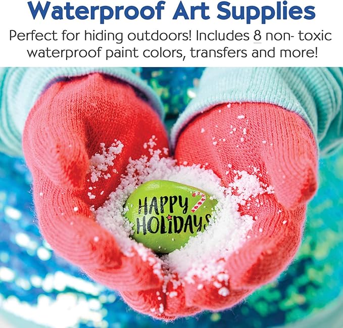 - CHRISTMAS CRAFTS FOR KIDS: Celebrate the season by hiding holiday painted rocks in your community. Perfect for beginners, this complete craft kit lets you paint and hide 10 rocks. It's one of the best Christmas activities for kids, making the season festive and fun. Paint, decorate, and hide your creations, spreading holiday cheer with every rock!