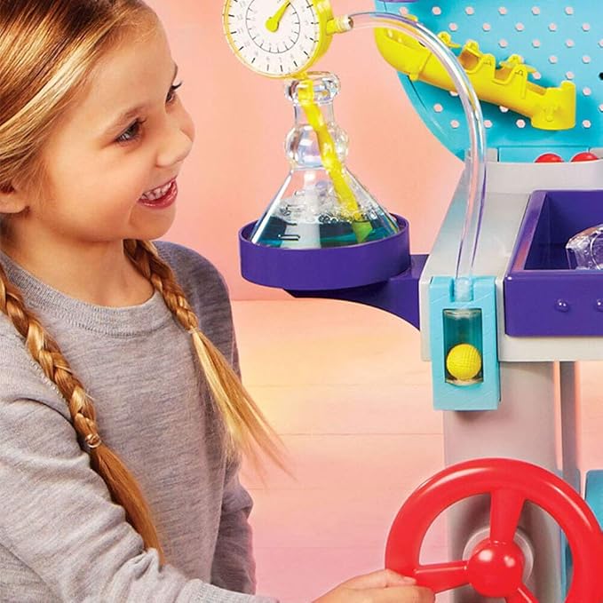 - 20 lab accessories included: 8 unique maze pieces, 3 maze balls, 3 test tubes, 3 Stirring spoons, Stirring stick, eyedropper and lab goggles