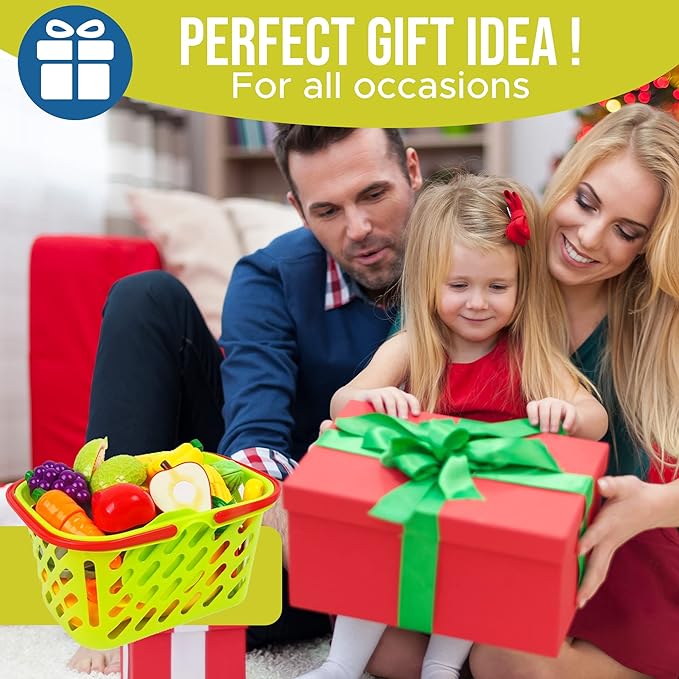 - ✅ THE PERFECT GIFT SET - Kids Kitchen & Grocery Shopping Pretend Food Playset makes the best gift choice for girls & boys. Its sturdy construction is tested to last even the roughest of kids' gameplays. Our Toys are safe, washable, & crush-resistant. Adorable & realistic cutting fruits & vegetables is one of the most interesting, entertaining gifts for any occasion, birthdays, holidays, Hanukah, Christmas. Children love pretend games & family roles, start enjoying playtime with your toddler & baby.