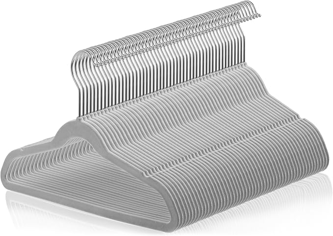 Casafield 50 Velvet Kid's Hangers - 14" Size for Children's Clothes - Gray