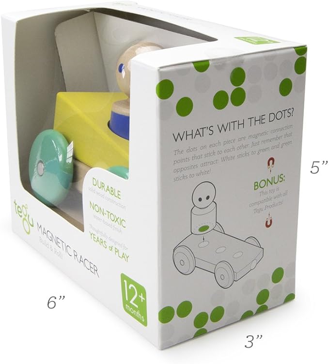 3 Piece Tegu Magnetic Racer Building Block Set, Yellow Big Top