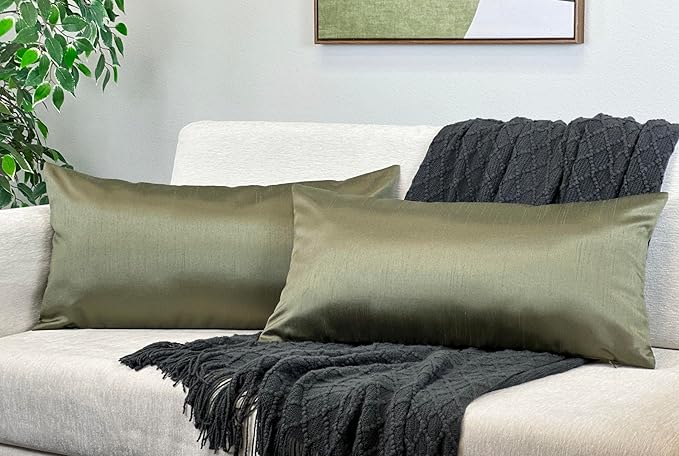 Aiking Home 12x24 Inches Faux Silk Rectangular Throw Pillow Cover, Zipper Closure, Sage (Set of 2)