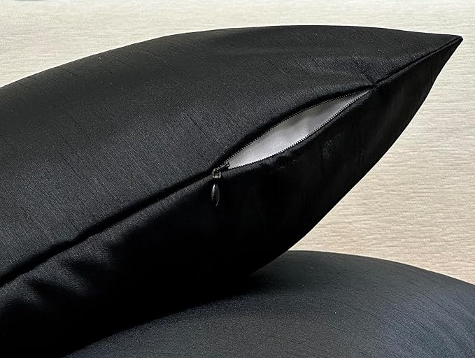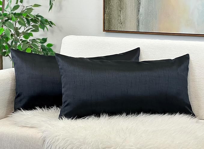 Aiking Home 12x24 Inches Faux Silk Rectangular Throw Pillow Cover, Zipper Closure, Black (Set of 2)