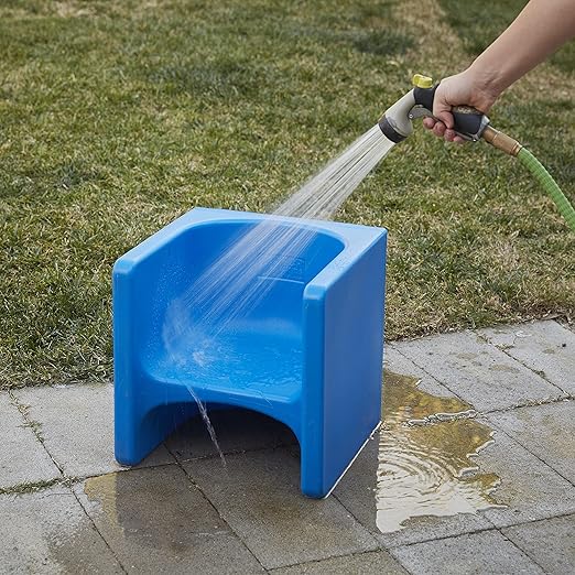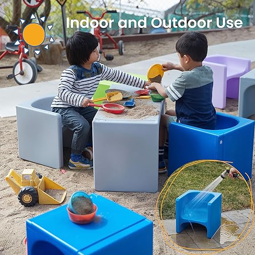 - Durable Design: Children’s furniture is lightweight, UV-protected, and has no hardware to maintain for use indoors and outdoors; the chair has indented grooves to stack for space-saving storage