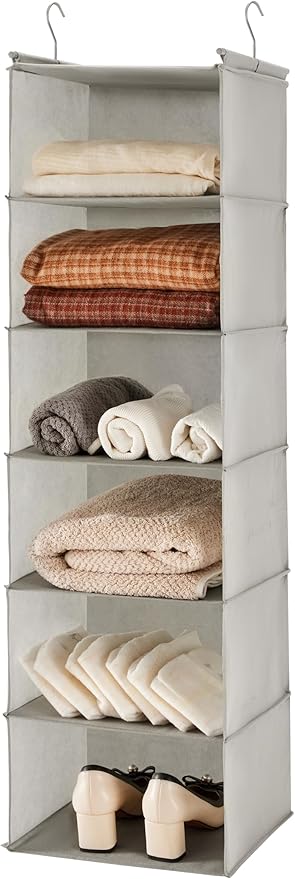 MAX Houser 6 Tier Shelf Hanging Closet Organizer, Closet Hanging Shelf with 2 Sturdy Hooks for Storage, Foldable (Light Grey)
