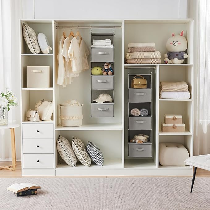 - HANGING CLOSET ORGANIZER - Improve your closet organization with open shelving that provides great accessibility and visibility, organizer maximizes utilization of vertical space, makes it perfect for small closets.