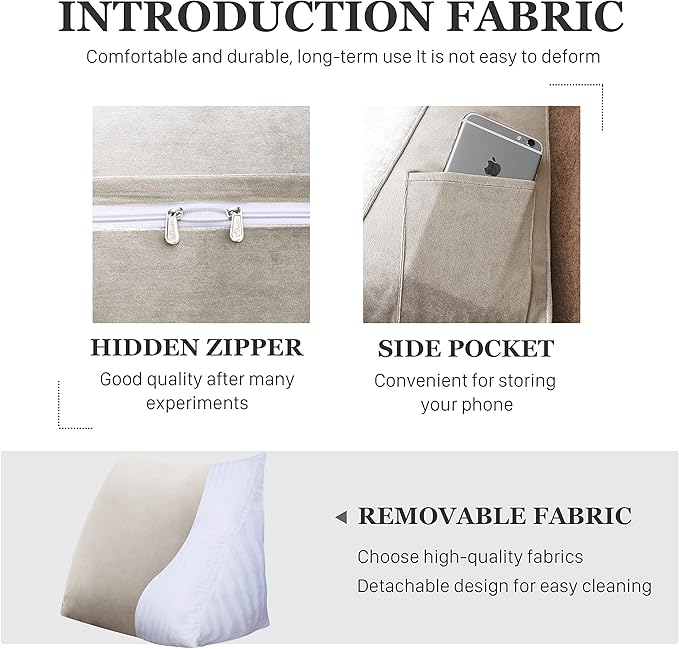 - High Quality Material: The shell is made of smooth and soft material, the Multi functional daybed backrest pillow’s cover is breathable, delicate touch and wear-resistant;The triangular pillow insert is Filled of PP cotton, good rebound and soft, which is much softer than memory foam.