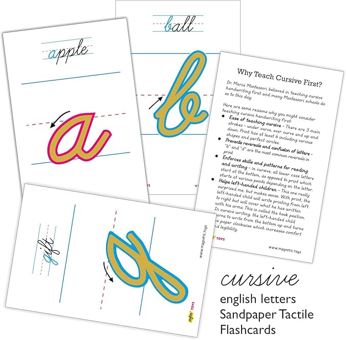 MFM Toys Sandpaper Tactile English Letters Flashcards (Cursive (Lowercase)) Montessori Lower Case Cursive Sandpaper Letters