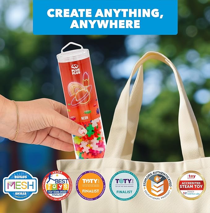 PLUS PLUS 240 Piece Interlocking Building Blocks for Kids, Open Ended Connecting Toys, STEM Bin Classroom Mini Manipulatives - Neon Mix Play Tube