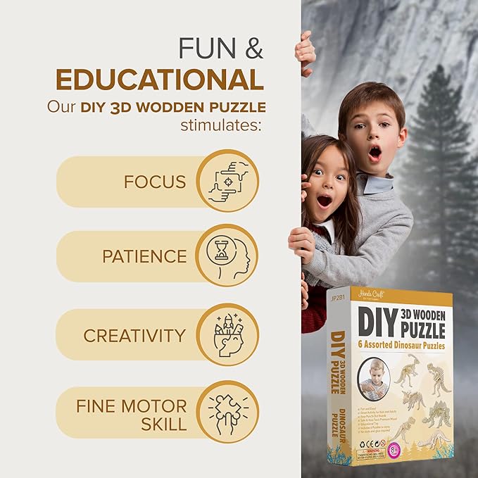 - Thrilling 3D Wooden Puzzles: A fun DIY activity for ages 8+ with a prehistoric dinosaur theme. Challenging and mentally stimulating hobby perfect for family bonding time or creative quiet time.