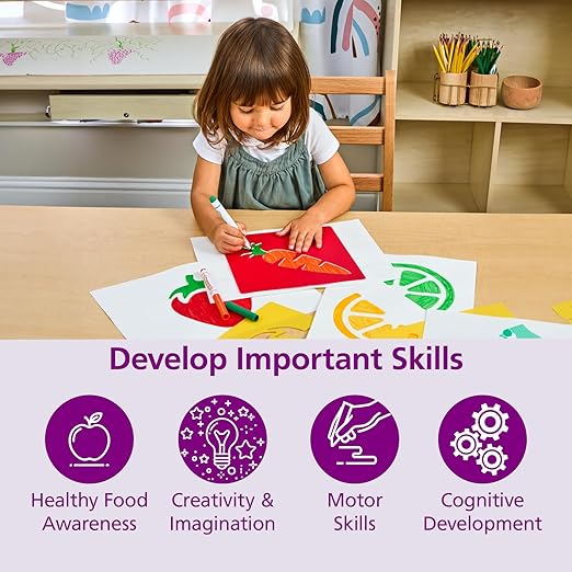 Colorations Fruit & Vegetable Shapes Stencils for Kids, 8 inches, Jumbo, Sturdy, Quality, Washable, Paint, Draw, Spray, Classroom, Arts & Crafts, Teacher, Educational