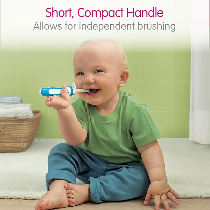 - EASY TRANSITION TO INDEPENDENT BRUSHING – The short and compact handle on each toothbrush for baby is easy for both babies and toddlers to hold and use on their own