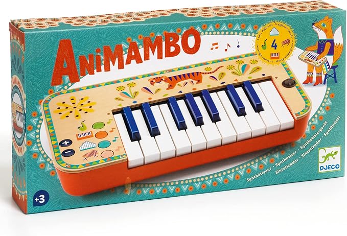 DJECO Animambo Synthesizer - Safe Music Instrument for Kids, Cute Educational Toddler Musical Toy for Motor Skills, Creativity, Imagination & Rythym - Toys for 3+ Years Girls & Boys