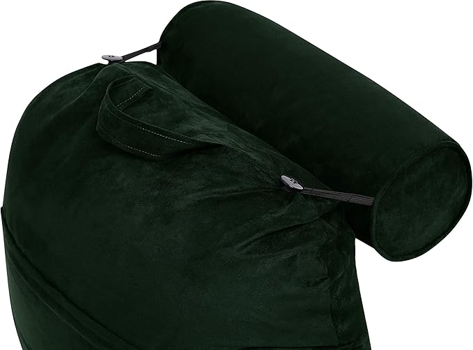 Husband Pillow XXL Aspen Edition, Adult Reading Sit Up Bed Rest Pillow for Bed with Arms & Neck Roll on Bungee Cord - Premium Memory Foam, Reversible 2 Sided Cover Micro Suede or Plush, Ramona Green
