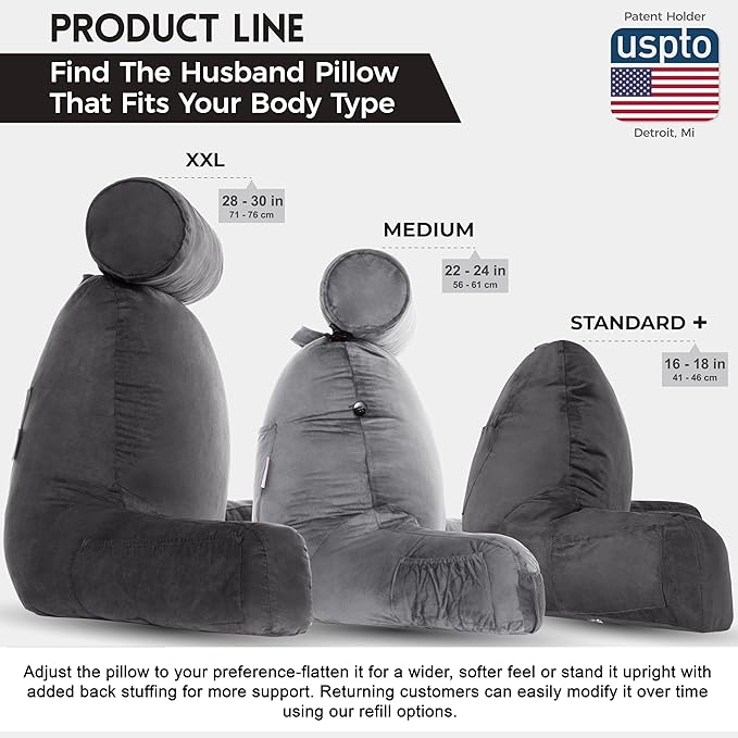 - Husband Pillows for Adults: The cowboy aspen special edition husband pillow for bed with reversible cover is bigger and better than the rest! Far more than just an ordinary pillow this backrest pillow with arms serves as a sturdy and full-formed bed backrest that supports the entire upper body as no other pillow can and its easy to saddle up and take along with you anywhere you go with its convenient built-in handle at the top.