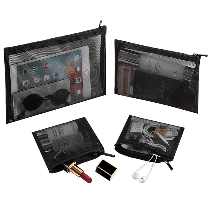 EASYFUN Mesh Pouch, Make up Bag with Zipper Cosmetic Organizer Pouch for Daily or Travel to Keep Small Items, 4 PCS Black