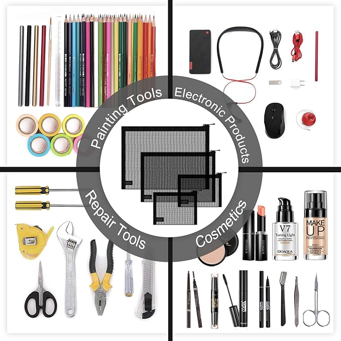 - ❤ 【CONVENIENT ZIPPER POUCH】 The mesh bag with zipper is very convenient for putting in or taking out things.Keep your pens, toiletries, cosmetics and small travel items organized and safe.