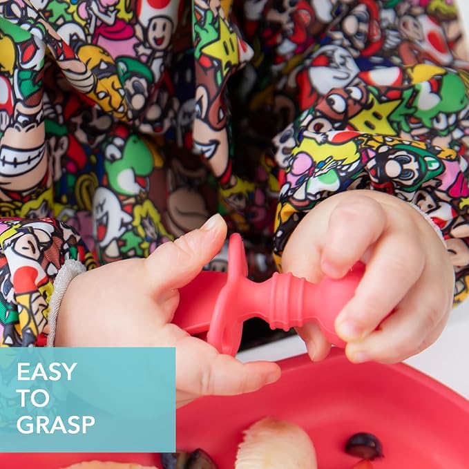 - GENTLE ON GUMS – Textured silicone is not only easy-to-grip, but soft and gentle on gums; Chewtensils can be chewed by teething babies; the back of the spoon head has sensory bumps to stimulate gums