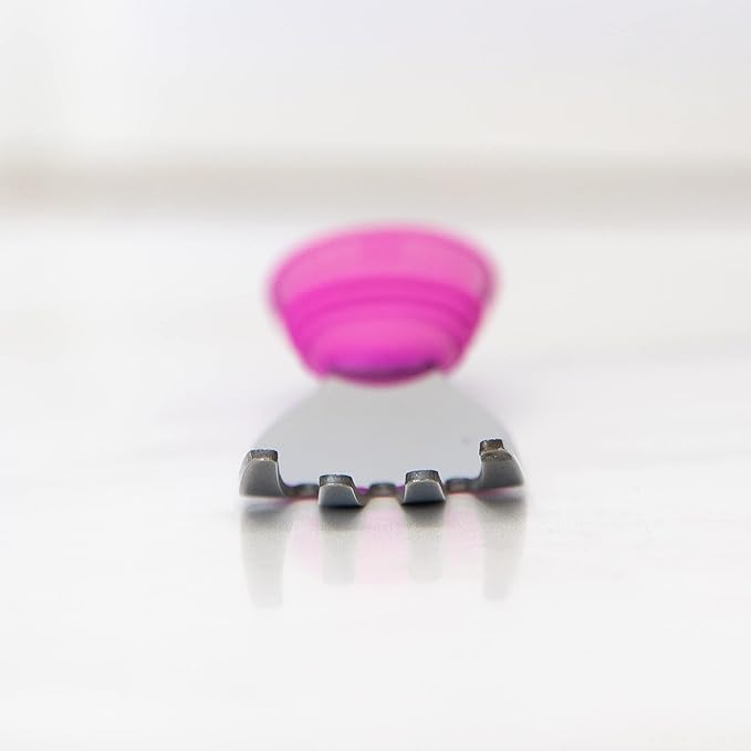 Bumkins Toddler Utensils, Kids Size Fork and Spoon Set, Silicone and Stainless-Steel Training Silverware, Angled Forks / Sporks for Self-Feeding, Children Hold Learning to Eat, 18 Months Up, Fuchsia