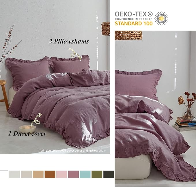- Ultimate Comfort: The linen ruffle duvet cover king size is made of 100% natural linen, experience the utmost comfort with the soft and breathable linen material that helps regulate temperature, ensuring a restful night's sleep. Certified by OEKO-TEX Standard 100.