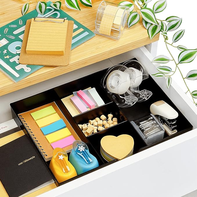- Adjustable Drawer Organizer: Our drawer organizer has 3 sections with 1 section in the middle adjustable perfect for desk accessories, pencils, pens and others