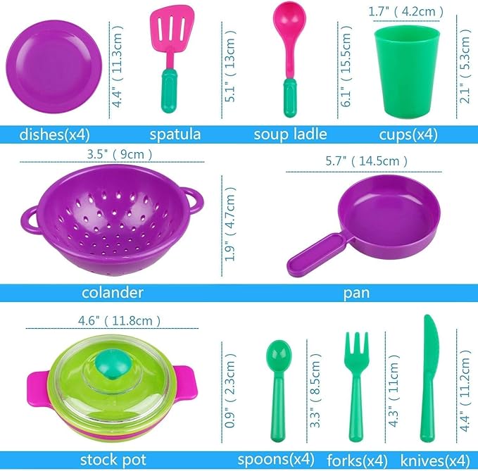 • EARLY DEVELOPMENT: Toddlers are known to have short attention spans. Give them this amazing STEM toy, and watch as they become entertained for hours on end! Set includes sets of fork, knife, spoon, cup and plate