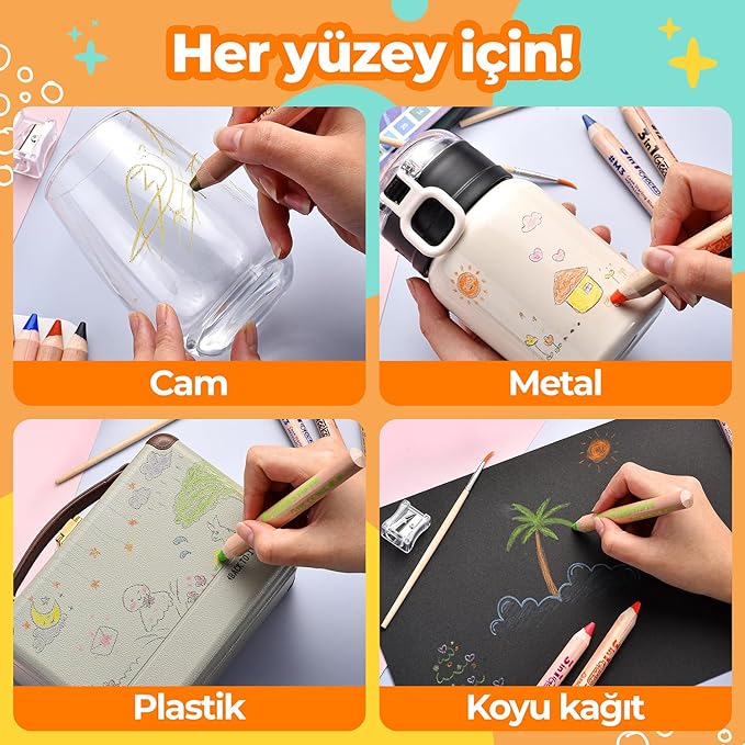- 3 IN 1 PRODUCT - Color pencils, watercolor pencils and wax crayons all in one product! Made especially to fit kid’s hands with a 13mm strong lime wood and 8mm long lasting lead