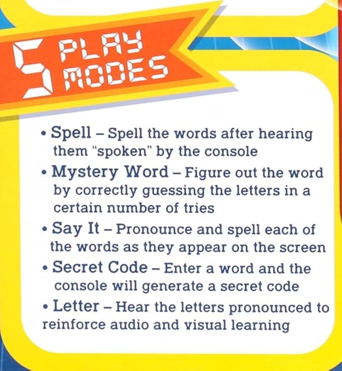 - 5 Play Modes: Enjoy hours of educational fun with 5 Play Modes! Spell, Mystery, Say It, Secret Code, and Letter—which game will you play today?