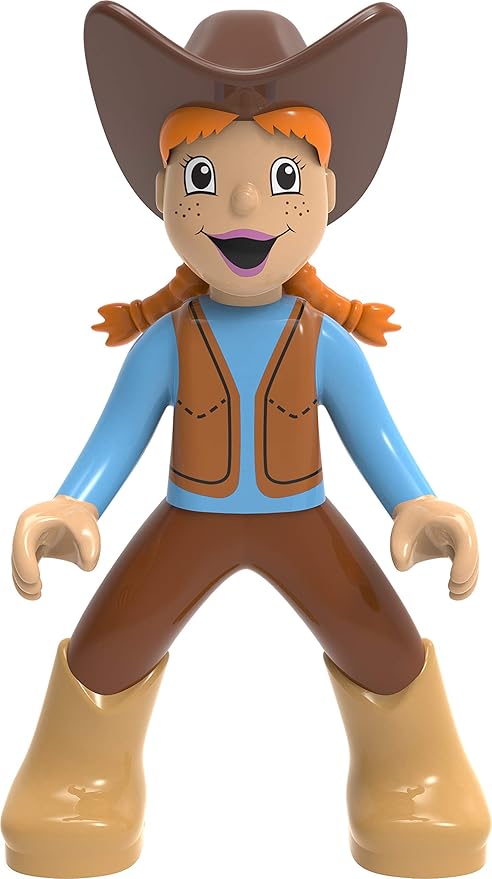 - Build & Play: recreate a charming railroad scene with buildable track pieces, a train engine and car, plus fun play figures - a train engineer, a cowgirl, and a horse!