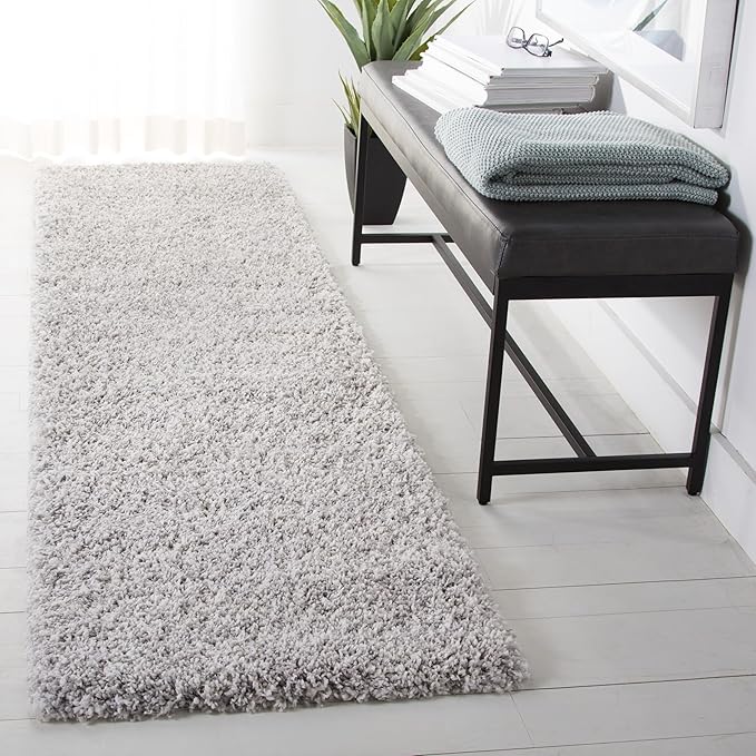 SAFAVIEH Royal Shag Collection Runner Rug - 2'2" x 8', Light Grey, Non-Shedding & Easy Care, 2-inch Thick Ideal for High Traffic Areas in Living Room, Bedroom (RYG117G)