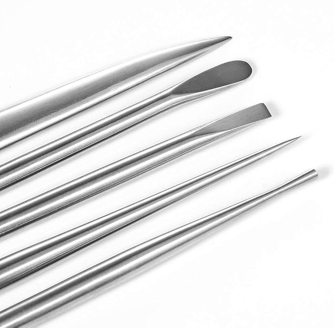 - Create textured grooves with the forked end and carve out concave areas with the small curved tool. The rounded ball end can smooth out hard to reach places while the pointed tool shapes fine details with precision.