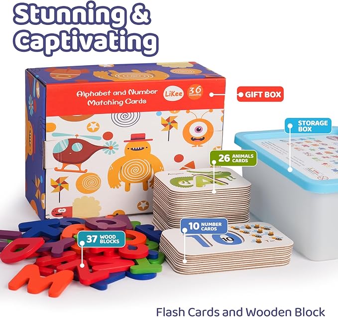 • Spark Kid’s Interest with Fun Illustrations: LIKEE created fun illustrations on each of the 26 letter cards allowing kids to associate objects and words with each of the letters of the alphabet, like F is for Fox, and the numbers 1-10 have the corresponding amounts of animals for sight counting. it will keep your youngsters engaged for hours.