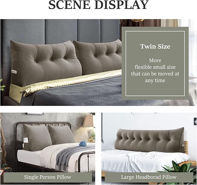 Bed Wedge Pillow for Headboard Large Bolster Pillow Reading Pillows for Sitting Up in Bed Adult, Triangular Backrest Cushion Book Pillows for Daybed Couch Support Upholstered(Camel, Twin)