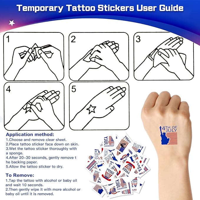 - SUPER VALUE PACK - Our 146 Pcs fourth of July Party Assortments includes 12 Pcs Handheld American Flags, 6 Pcs Beaded Necklaces, 6 Pcs Star Necklaces, 6 Pcs Bracelets, 6 Pcs Headbands(6 styles), 8 Pcs Mustaches, 6 Pcs Patriotic Brooches, 6 Pcs Blow Outs and 84 Pcs Temporary Tattoos. This set is perfect for your Independence Day party.