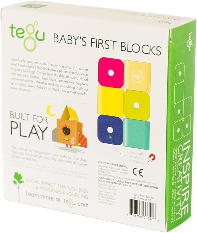 Tegu 6 Piece Magnetic Baby’s First Building Blocks, Tints