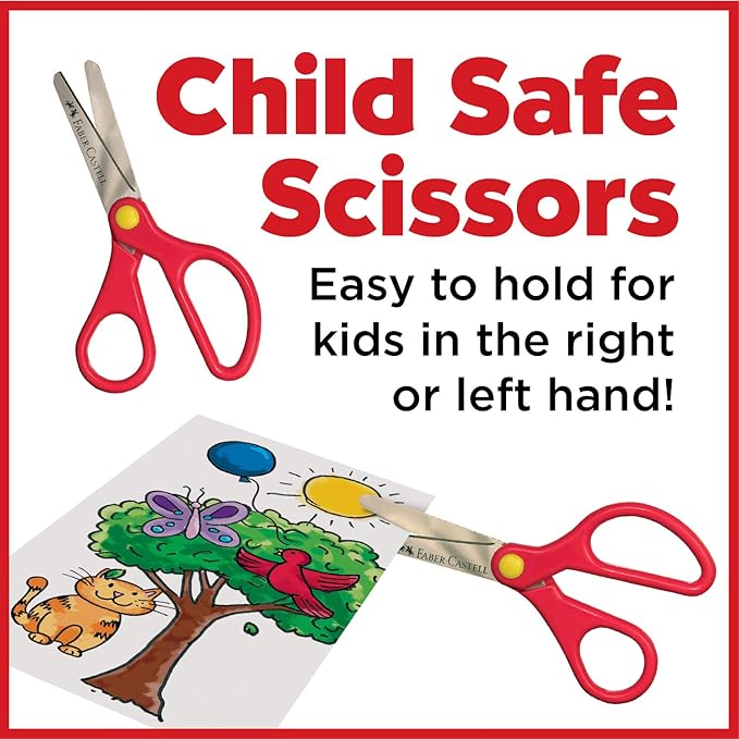 - CHILD SAFE SCISSORS – Ideal scissors for kids! Ergonomic shape makes them easy to hold and use regardless of what hand. Scissor blades are rounded off to protect small fingers!