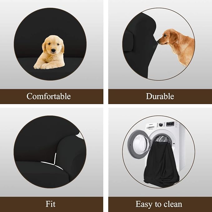 Easy-Going 4 Pieces Microfiber Stretch Recliner Slipcover – Spandex Soft Fitted Sofa Couch Cover, Washable Furniture Protector with Elastic Bottom for Kids, Pet(Recliner, Black)