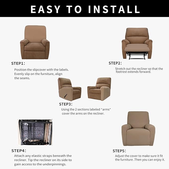 - PERFECT FIT: This innovated 4 Piece recliner couch cover is crafted from 100% waterproof Microfiber Fleece fabric, including 2 piece of arm cover and 1 piece of seat cover and 1 piece of back rest cover (fit sitting width between 23-34 inch). Feature one-size-fits-most, kindly measure before ordering.