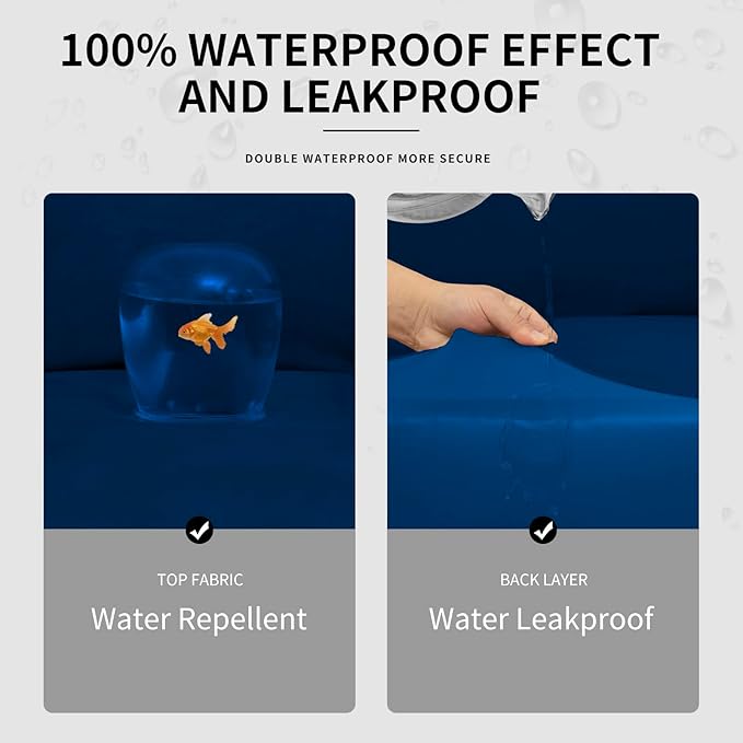 - 100% Waterproof Fabric: Top Fabric is processed with waterproof treatment, and back coated with waterproof layer. Dual waterproof feature can guarantee 100% waterproof effect and leakproof. elastane +polyester, back coated with TPU film. The couch cover is a great choice for homes with children and pets.