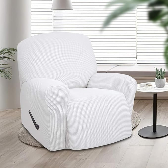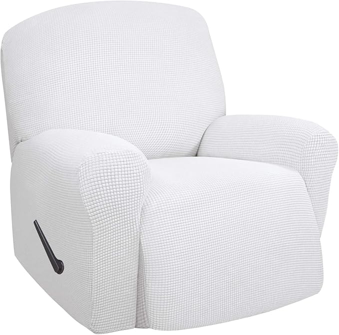 Easy-Going Oversized Recliner Stretch Sofa Slipcover Sofa Cover 1 Piece Furniture Protector Couch Soft with Elastic Bottom Kids,Polyester Spandex Jacquard Small Checks(Oversize Recliner,Snow White)