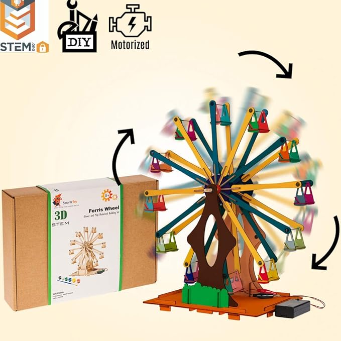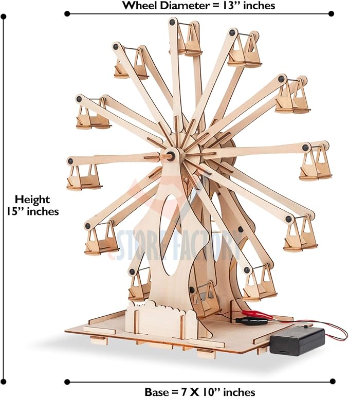 Wooden Ferris Wheel - DIY 3D Puzzle & Educational Creative Crafts Kit - STEM Projects for Kids Ages 8-12-16, Boys & Girls - Construction Toys Set - Model Building Kit for Christmas & Birthday Gifts