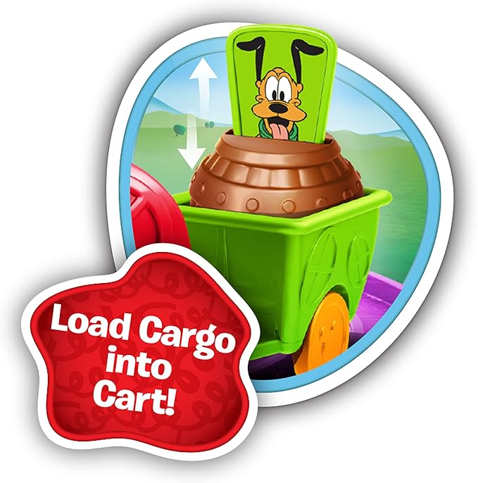 - Includes motorized train, cargo cart, one 3” articulated Mickey Mouse figure, directional sign, arch, cargo, depot station with crossing gate, and 10 train track pieces.