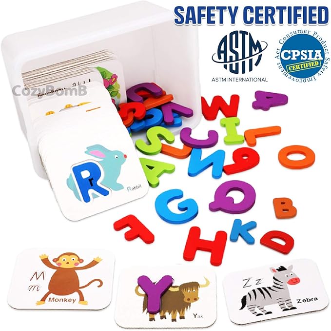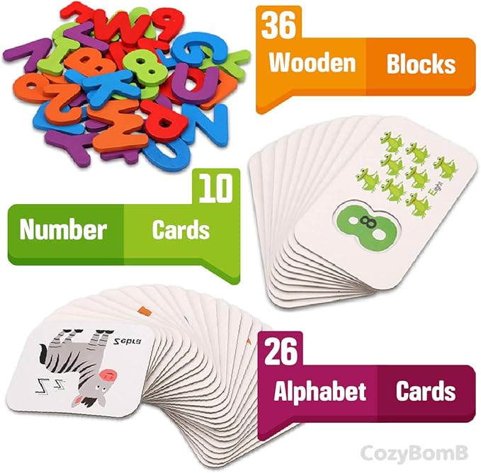 CozyBomB™ Toddler Alphabet Flash Cards - Preschool Activities Learning Montessori Toys ABC Wooden Letters Jigsaw Numbers Alphabets Puzzles Flashcards for Age 2 3 4 Years Old Educational for Kids Baby